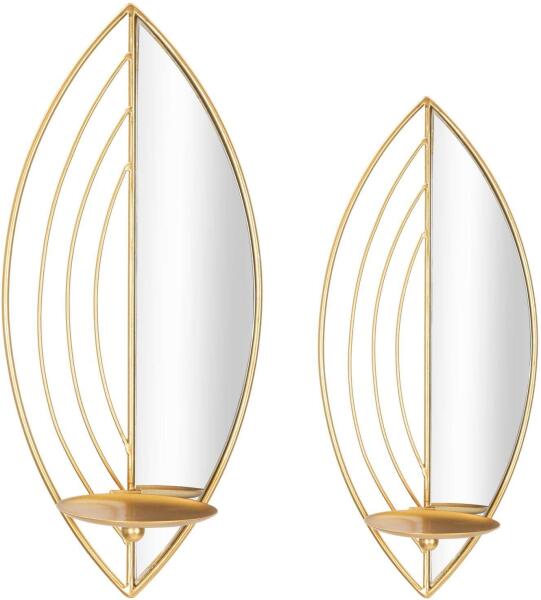 LAUF Arany Fali Gyertyatartó Szett - Elegancia és Fény az Otthonodban ✨ Varázsolj ragyogó eleganciát otthonodba a LAUF arany kétrészes gyertyatartó szettel! A falevelek által ihletett formavilág és a tükrös díszítés különleges hangulatot teremt. Aranyszínű fali gyertyatartó szett Kétrészes készlet, különböző méretekkel Tükrös díszítés, mely százfelé szórja a gyertyaláng fényét Klasszikus dizájn, mely kiemeli a gyertyák meleg fényét Méretek:Méret Magasság (cm) Szélesség (cm) Mélység (cm)Nagyobbik 42 18 13Kisebbik 35 15 13Élvezd, ahogy a LAUF gyertyatartó szett csillogó felülete beragyogja a teret, meghitt és stílusos légkört teremtve! ?️